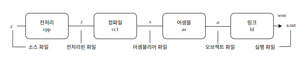 gcc는 아래의 프로그램을 차례대로 수행한다.